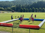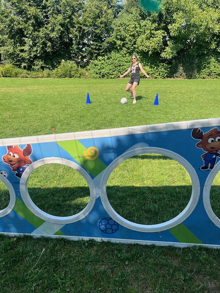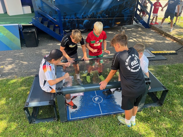 Mit dem Hoffe-Express hatten wieder ungefähr 50 fußballinteressierte Kinder Spaß und konnten sich bei Reaktionsspielen, im Kleinspielfeld, beim Schussgeschwindigkeit messen und an der Torwand austoben und aneinander messen.