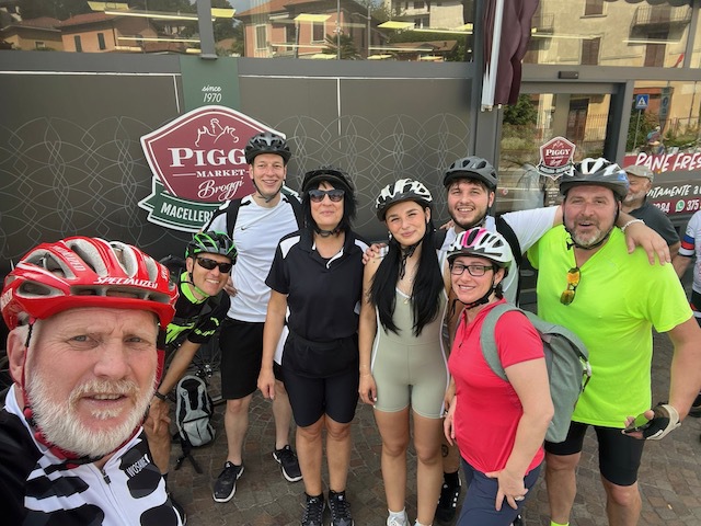 Nach kurzer Rast mit Cola und Bier waren wir bereit für den anstrengenden Schlussanstieg zurück nach Jerago. Im Ziel erwartete uns zur Belohnung ein wohlverdienter Prosecco, der die Tour stilvoll ausklingen ließ. Ein großes Kompliment an alle Mitfahrenden für das Durchhalten der am Ende doch stattlichen 70 Kilometer! Und ein besonders herzlicher Dank an das Team vom Gruppo Sportivo Jerago für die Führung dieser in verschiedenster Form unvergesslichen Rundfahrt.