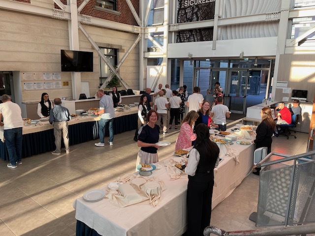 Am Abend dann fand der offizielle Festabend - dieses mal in einem Veranstaltungssaal einer Schule für Gastronomieauszubildende - in Gallarate statt. Nach schwungvoller musikalischer Eröffnung durch das Jugendorchester aus Jerago genossen wir - stilvoll serviert - wunderbares Essen. Bürgermeister Aliverti begrüßte die knapp 100 Teilnehmer und die Vorsitzenden der Vereine brachten in Ihren Reden die Bedeutung der europäischen Städteverbindungen und die Vielzahl der Aktivitäten zum Ausdruck. Markus Geistler überbrachte die Grüße von Bürgermeister Vierling und überreichte u.a. die neue Tasche des Partnerschaftsvereins, die in Notlagen hilft, schwere Lasten zu tragen.