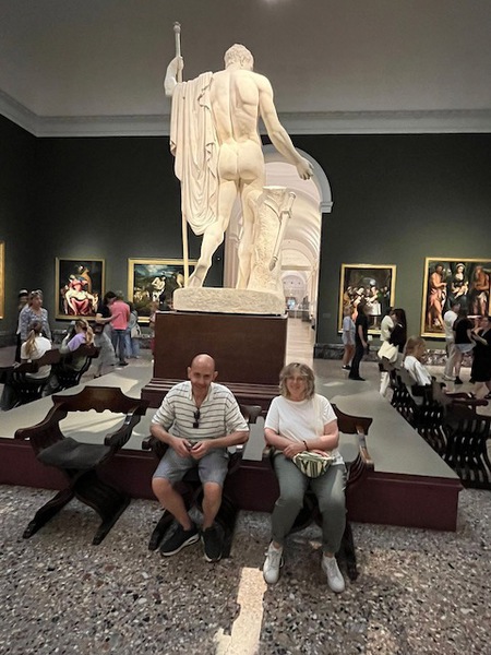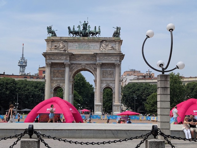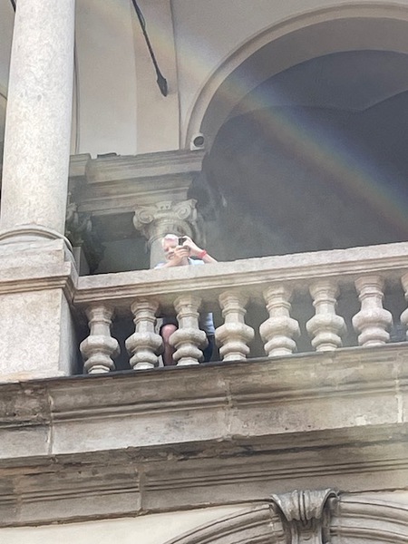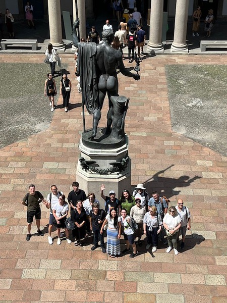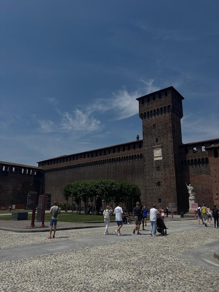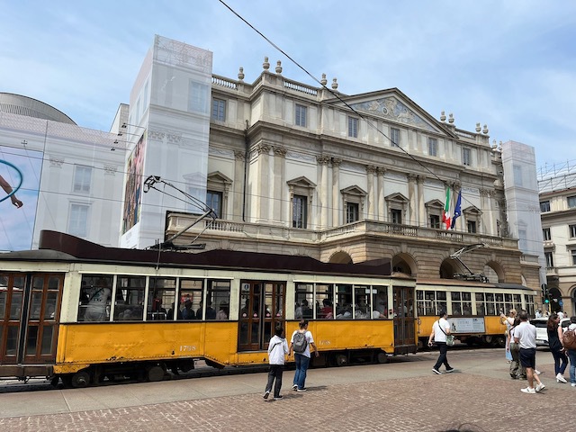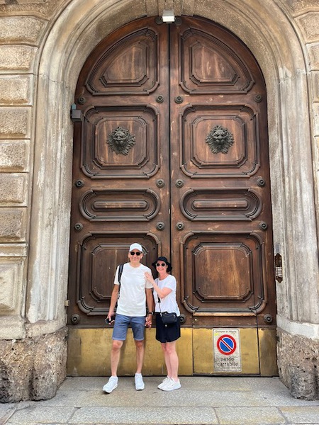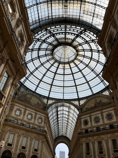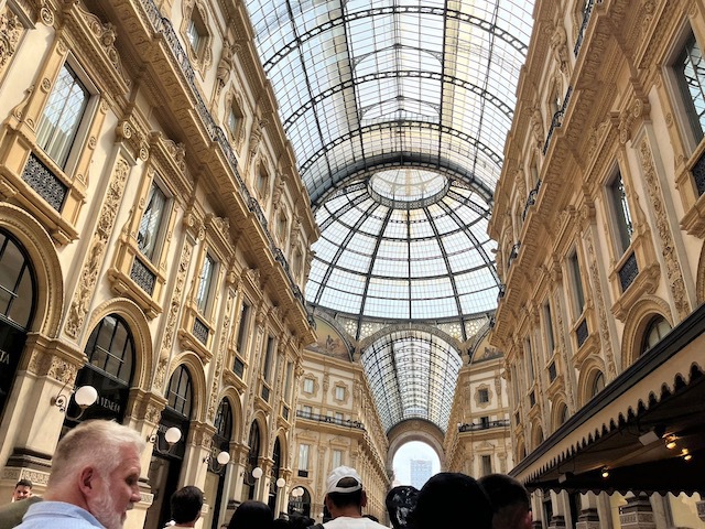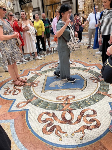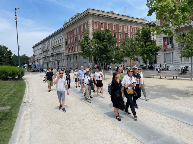 Mit der S-Bahn ging es dann aber super schnell mitten in die Stadt. Der Besuch in der Pinakothek war bestens organisiert und nicht nur für Kunstliebhaber interessant. Leider konnten unsere französischen Freunde nicht dabeisein, da es für sie keine Karten mehr gab. Wir trafen uns danach und wollten gemeinsam im Schlosspark picknicken, verloren aber auf dem Hinweg die Hälfe der Teilnehmer. Bei herrlichen Temperaturen mit gutem italienischem Lunchpaket entspannten wir uns bei sehr guter Livemusik im Park, um danach gestärkt in die Stadt aufzubrechen. Unsere italienische Führerin Enrica lozte uns zu den Orten, die wir sehen wollten: die Scala von Mailand (innen sicherlich schöner als außen!), die berühmte Via Monte Napoleone mit all den Nobelmarken, die man so kennt oder auch nicht. (Leute beobachten hat hier eindeutig Vorrang ;), durch die wunderschöne Galeria Vittorio Emanuele II, hinaus zum Piazza Duomo, auf dem die lautstarken Gesänge der AC Milano-Fans nicht zu überhören waren (abends fand das CL-Finale statt). Die Zeit verging wie im Fluge, so dass wir nur noch ein wunderbares Eis genießen konnten, der Aperol musste bis Jerago warten. Dafür schmeckte er dort um so besser auf dem Piazza Mazzini. Rundum ein sehr schöner, etwas chaotischer Ausflug, der italienischer nicht sein könnte. Wir lieben es, wenn wir auch manchmal ein bisschen daran verzweifeln.