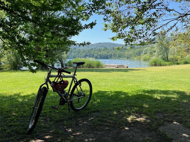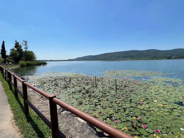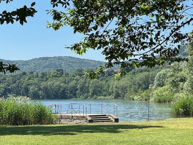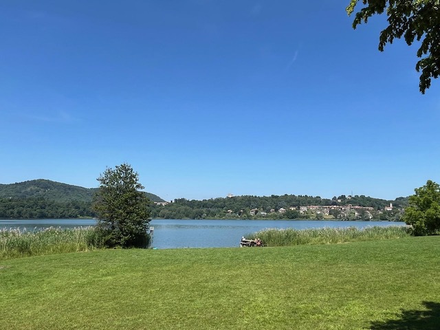 Bei perfektem Fahrradwetter – strahlendem Sonnenschein und angenehmen 25 Grad – startete unsere Tour in Jerago con Orago. Auf geliehenen Retro-Bikes machten wir uns unter der Leitung des Gruppo Sportivo Jerago auf den Weg. Die Route führte uns zunächst Richtung Vareser See. Entlang des Ufers, durch Wald-, Sumpf-, und Wiesenlandschaften ging es weiter zum idyllischen Lago di Comabbio. Dort angekommen stärkten wir uns mit leckerer Focaccia und ein Teil der Gruppe umrandete den See auf einer wunderschönen Runde.