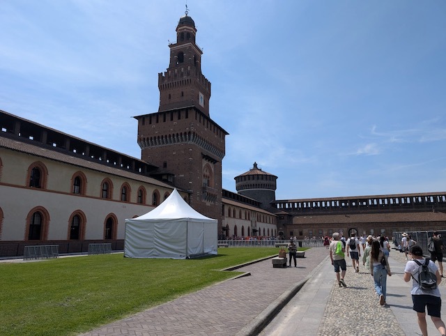 Am Samstag fuhren wir mit unseren Kleinbussen gen Milano und scheiterten erstmal am Parkplatz, da der Gemeindebus nicht unter der Höhenstange durchpasste. Also suchten wir den nächst möglichen Parkplatz, wurden tatsächlich sehr schnell fündig, wobei dort das Problem auftrat, dass der Automat wohl nicht funktionierte. Also ganz normale Schwierigkeiten in Italien ;)