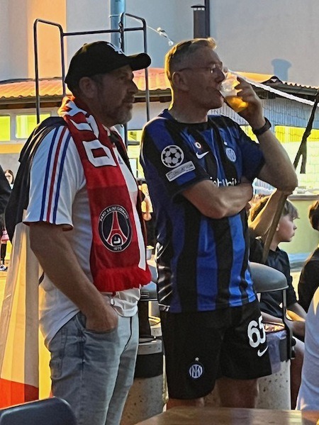 Am Abend wurde beim Oratorio am Sportgelände im Public-Viewing das in Deutschland ausgetragene Finale der Champions-League zwischen den italienischen und französischen Mannschaften aus Mailand und Paris angeschaut - mit Bier und guter Bewirtung. Und nicht nur die Franzosen feierten den grandiosen Sieg von St. Germain, sondern auch einige Italiener, die statt Inter eher den AC Mailand oder Juve untestützten.
