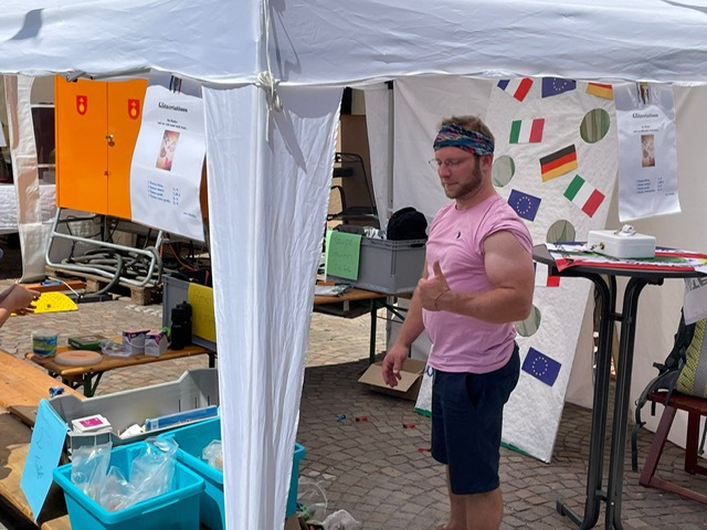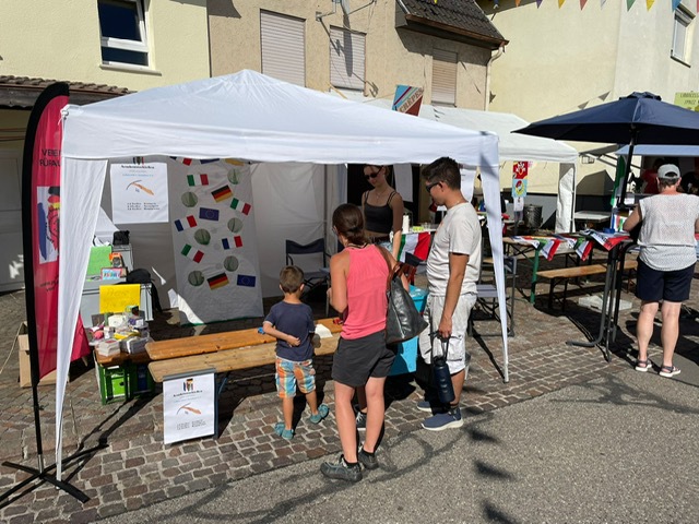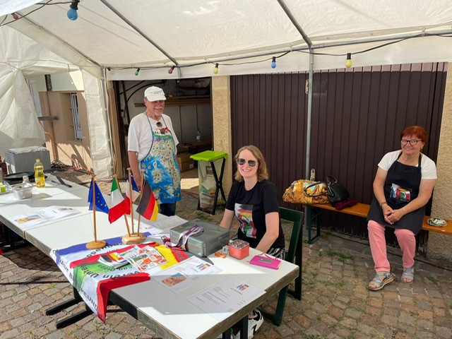 Französische Crêpes - qualitätsgeprüft durch Delphine Sack, italienischer und französischer Wein, Cocktails aus ganz Europa und die beim Armbrustschießen meist getroffene europäische Flagge: deutlich sichtbar war an unserem Stand, wofür der Partnerschaftsverein steht.